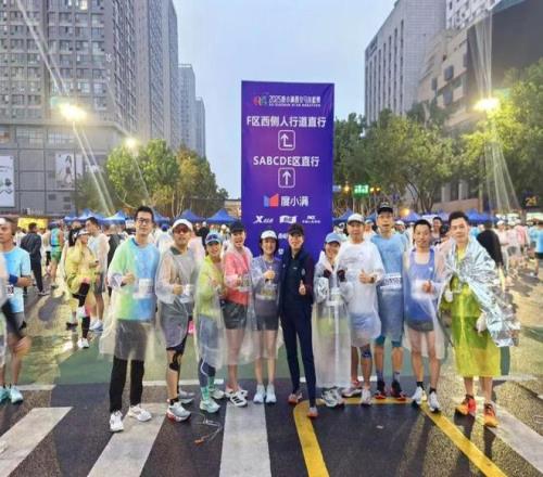 早上四点四十起床,六点半不到便存好包,与教练和伙伴们集合、拍照、检录、热身,等待那一声发令枪响。萌萌与我一路相伴,同为首马选手,我们赛前再次确认节奏:前三四公里要相互提醒一定不要被带节奏,看手表压配速压心率;三四公里以后凭体感提速到合适的速度巡航;最后五公里,“放手一搏”!这是远在新疆的吴教练反复叮嘱的策略,就怕我们第一次参赛过于亢奋,前面跑太快导致后程崩盘。龙井教练前一天也一再强调:首马,完赛就是胜利!