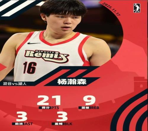 11月17日,杨瀚森所在的撕裂之城混音队以111-113不敌南湾湖人队,这场比赛杨瀚森出战30分钟,16投8中,其中三分球5中2,罚球2罚全中,拿到21分9篮板3助攻1抢断3盖帽的全面数据。并且杨瀚森在比赛结束前连续投进2记三分球,差点帮助撕裂之城混音队完成逆转,这场比赛是杨瀚森的正名之战,得分数据也是他NBA生涯以来的新高,包括夏季联赛、季前赛、常规赛和发展联盟。