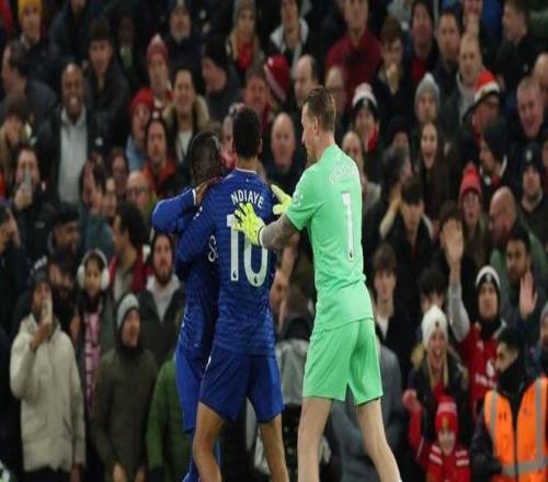 被罚下后,身穿27号球衣的盖耶怒不可遏,若非门将乔丹·皮克福德及时上前劝阻,他极有可能冲向基恩再度动手。