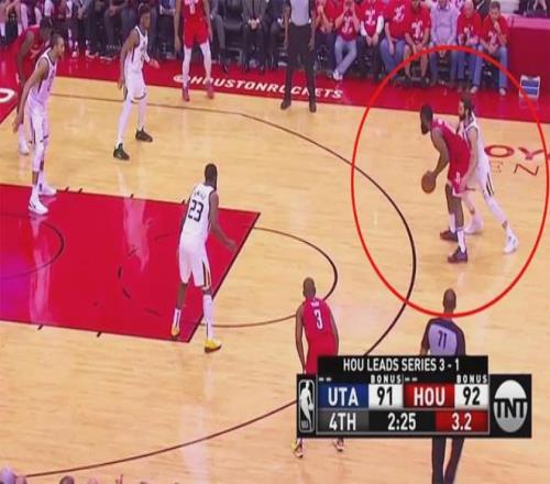 上半场哈登拿下13分,第三节开始不到三分钟,那记创造历史的投篮出现了。面对防守者的紧逼,哈登在弧顶运球,突然启动,三分出手——篮球划出熟悉的弧线,应声入网。