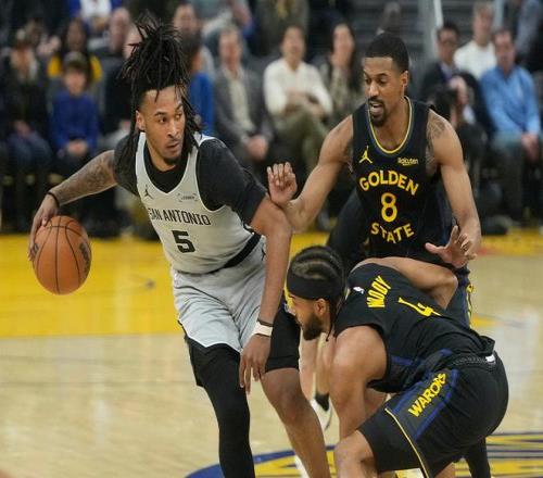 次节上来,穆迪三分再中,卡斯尔、文班、布莱恩特打出6-0攻击波,波斯特连砍5分回应,两队再度围绕10分分差展开拉锯战,节中文班、卡斯尔一度连得6分追平,勇士多点开花总能给出回应,好在节末福克斯、哈珀先后发威,加上瓦塞尔制造三分犯规,半场战罢马刺63-67将分差缩小至4分。