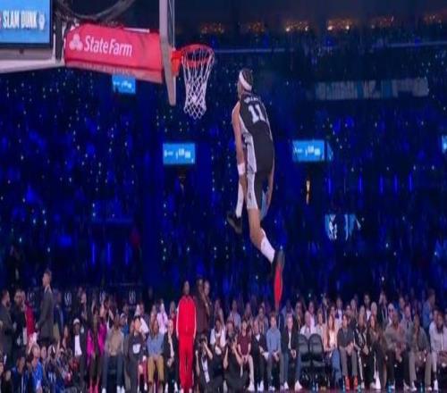 凯沙德-约翰逊决赛第二扣从后场开始启动,跑到罚球线以里起飞空中抡圆大风车暴扣得到47.8分,两扣合计得到97.4分。